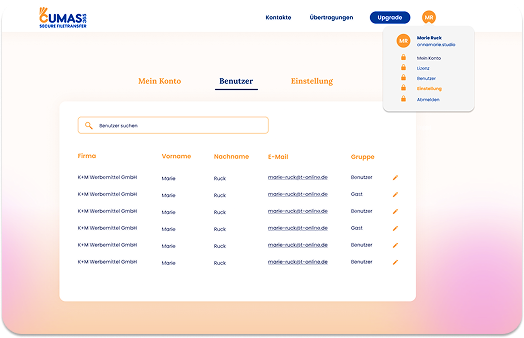 Sende große Dateien kontrolliert und protokolliert in Sekunden-schnelle an deine Kunden oder Teamkollegen.